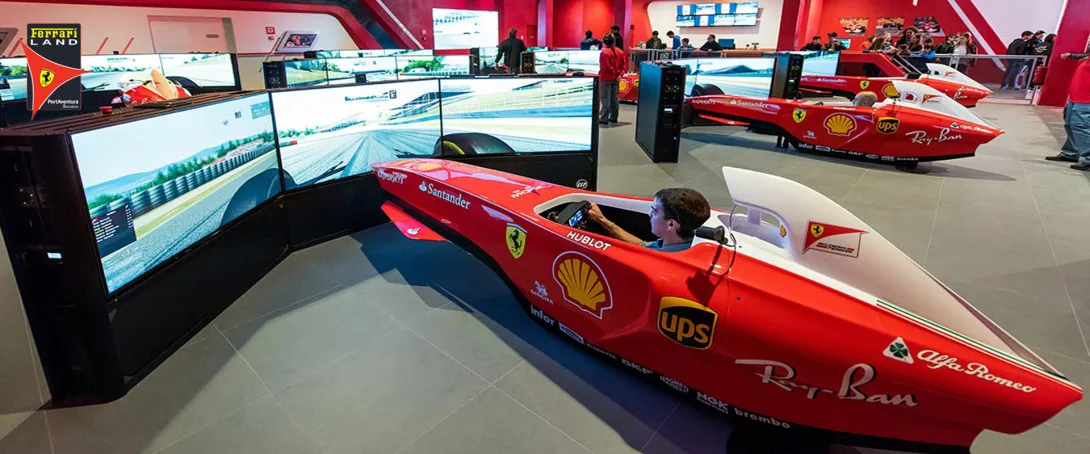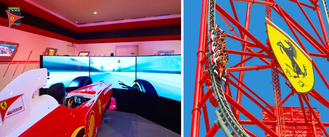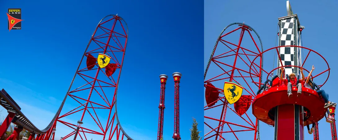 Experimente a paixão da Ferrari com a sua família e amigos em atracções espectaculares como: quedas livres, corridas e curvas vertiginosas e sinta-se como um verdadeiro piloto num simulador de F1. Os mais pequenos podem subir a bordo de todas as atracções da área infantil, projectadas especialmente para eles. Desde uma queda livre à montanha-russa Junior Red Force, poderão viver a experiência da Ferrari em qualquer idade.