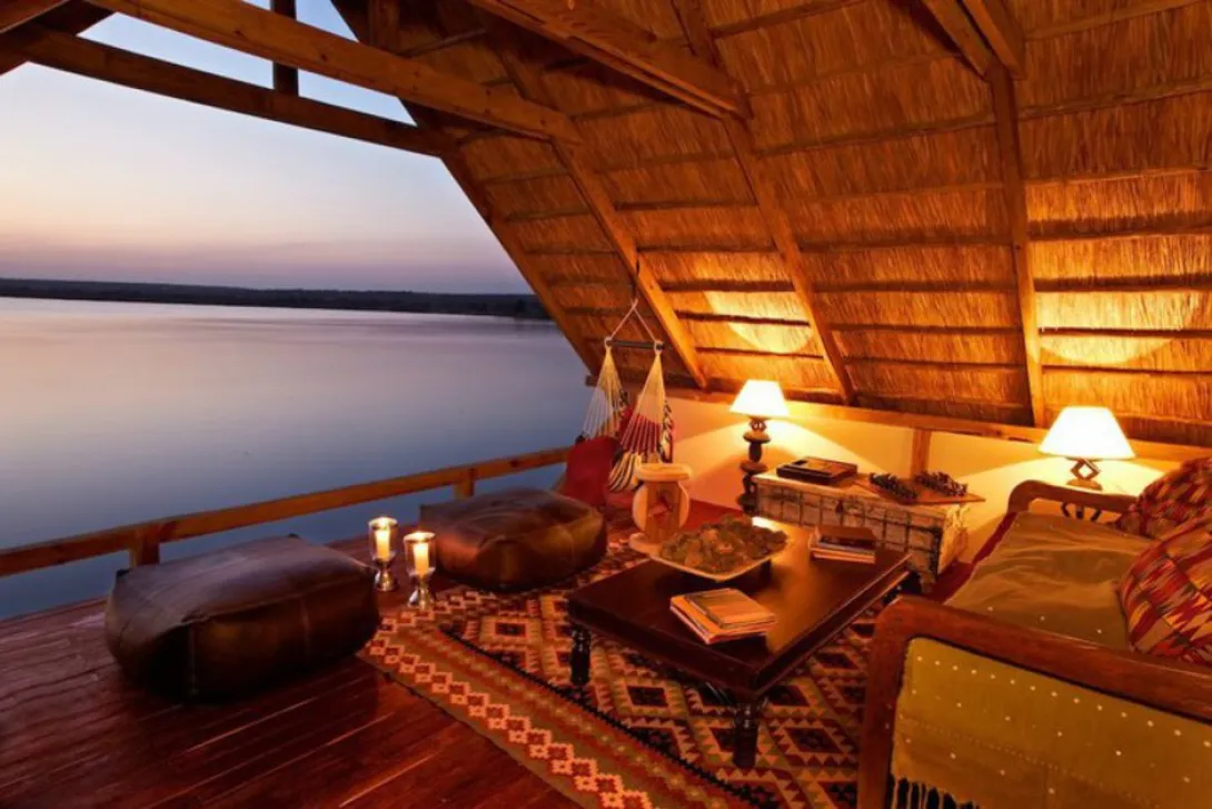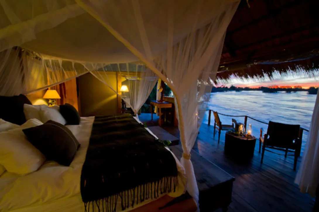 Tongabezi é um luxuoso lodge instalado perto das Victoria Falls nas margens do rio Zambeze, fundado em 1990 por Ben Parker e Will Ruck-Keene, pionieros do eco-turismo na Zâmbia.Tongabezi combina romance e exclusividade com um serviço acolhedor e atencioso. Cada uma das 10 casas e cottages tem seu próprio empregado, que cuida dos hóspedes ao longo da sua estadia e age como um concierge particular.Não existe um padrão definido nem horários para os dias passados em Tongabezi. Os hóspedes podem fazer o que bem lhes apetecer, com game drives incluídos, caminhadas no parque nacional ou passeios de barco. As majestosas Victoria Falls podem ser vista a pé do parque nacional, dentro do desfiladeiro, da ilha de Livingstone e do ar.é um excelente local para descobrir e sentir a serenidade africana. Aliás, se sempre quis viver na floresta, opte por ficar na Tree House. Espalhada por vários níveis, a suite tem uma grande cama com dossel, ampla casa de banho com banheira, e um lounging deck em forma de mezzanine com vistas incríveis sobre o Zambeze. Pode também ficar na Nut House, com azulejos de padrões africanos, chão em pedra e uma piscina com vista para o rio.Para terminar, e se vai em lua de mel ou o romance está no ar, para além do óbvio jantar à luz das velas, reserve uma viagem à noite até às cataratas para assistir ao arco-íris lunar sobre a água...