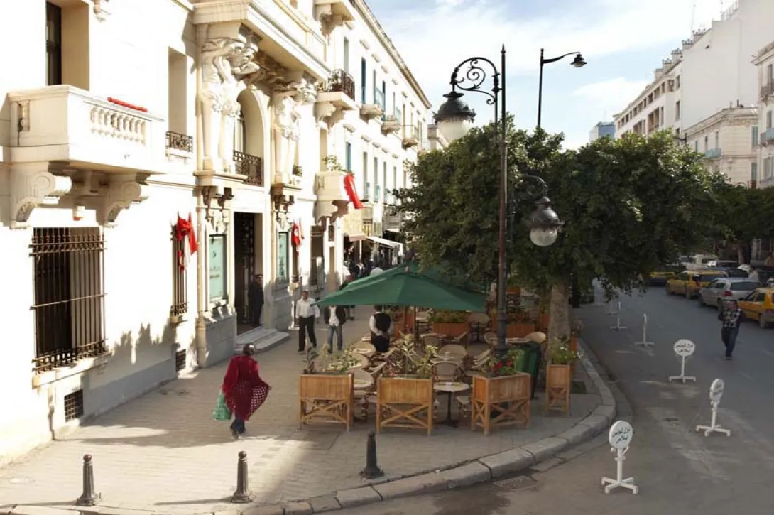 Originalmente construído em 1911, o Tunisia Palace permanece como um dos lugares favoritos do jet set da Belle époque francesa: para emissários, diplomatas, intelectuais e oficiais, antes e depois da independência do país. No início do século XX, a Tunísia estava sob ocupação francesa. Mas a sua capital era já uma metrópole com um verdadeiro ballet diplomático. A capital apresentava surpreendentes contrastes entre a cidade árabe e a exuberância francesa: Tunis da Belle époque, o país entre duas guerras. Após esses anos de glória, o Palace foi, gradualmente, caindo no esquecimento e na ruína, antes de ser demolido em 1970. Pouco mais de 37 anos depois, em 2007, o hotel reabre em grande estilo, a alguns metros apenas da sua localização original, na Avenue de France, no que fora o Crédit Foncier d"Algérie et de Tunisie (CFAT), antiga sede do Amen Bank, fundador do projecto e financiador da cadeia Golden Jasmine Hotels, lançada pelo empresário tunisino Adel Boussarsar.Centralmente localizado, a poucos passos da histórica medina de Tunis e do souk, é hoje um charm hotel com uma fachada tipicamente pós-moderna, que combina atributos do barroco francês do século passado (anos 20), estilo veneziano (alguns pormenores recordam o teatro municipal) e, claro, a arquitectura árabe. O hall de entrada impressiona pela sua solene simplicidade, transmitindo uma certo calor e convivialidade, parecendo contar uma história nostálgica de tempos passados. Os quartos - 48 no total - estão decorados num estilo rústico de tons vermelho forte. Em contraponto, o restaurante e o bar, com os sesu recantos e colunas imensas, constribuem para esta harmoniosa combinação entre o antigo e o contemporâneo. O hotel dispõe ainda de um restaurante - o Dome -, e de um snack bar de inspiração italiana - Belevue -, cujo terraço oferece uma bela vista panorâmica da cidade.13, Avenue de France