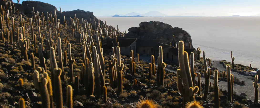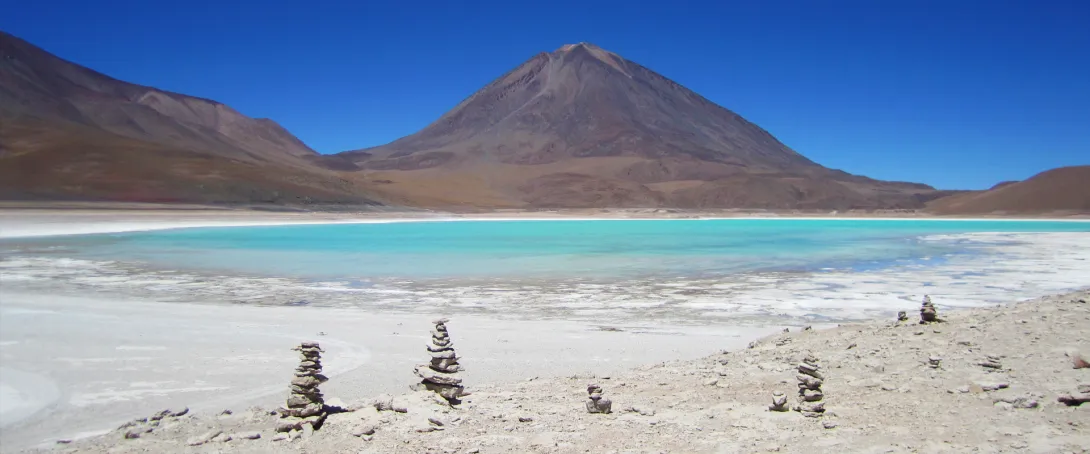 • Os Salares e os vulcões no Altiplano (a mais de 4000m) do sudoeste da Bolívia,