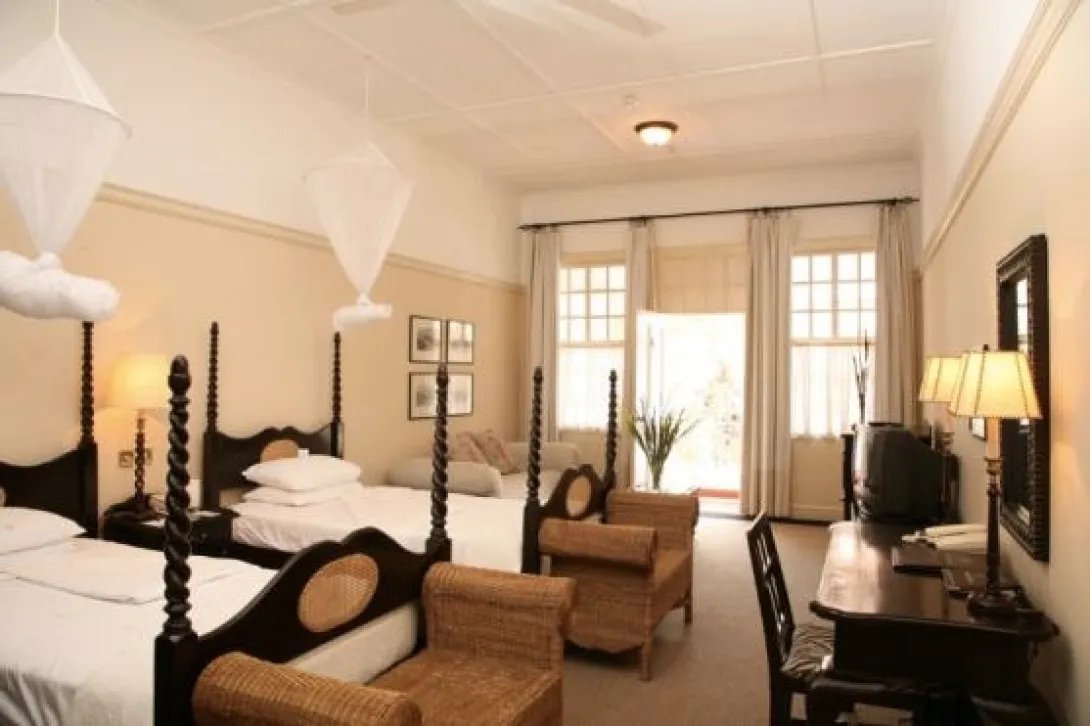 Este é o hotel original da celebérrima linha férrea, agora a Grande dama dos hotéis coloniais africanos e uma atracção turística por si só.Mesmo que não possa ali ficar, tome pelo menos um chá ou um refresco no terraço sobre os magníficos jardins, com uma visão dominante sobre a segunda cascata e a ponte de Victoria Falls.O pátio ainda mostra as antigas "liteiras" que os empregados utilizavam para transportar os hóspedes até às quedas de água. Os lagos de lírios acolhem um enorme número de sapos e rãs que, com as suas serenatas, acolhem e aborrecem os hóspedes, alguns esquecendo-se mesmo que estão no meio de áfrica. Larry Norton, um reconhecido artista que retrata a vida animal, tem uma exposição permanente no hotel.