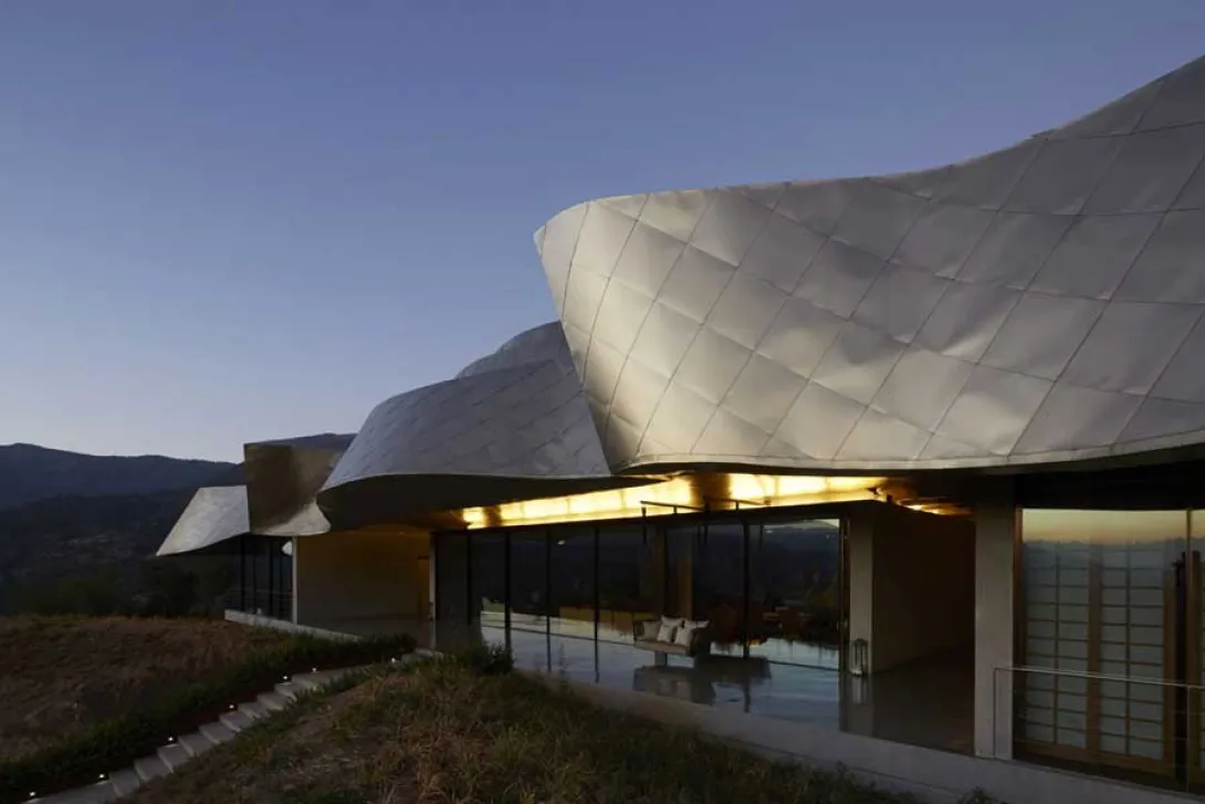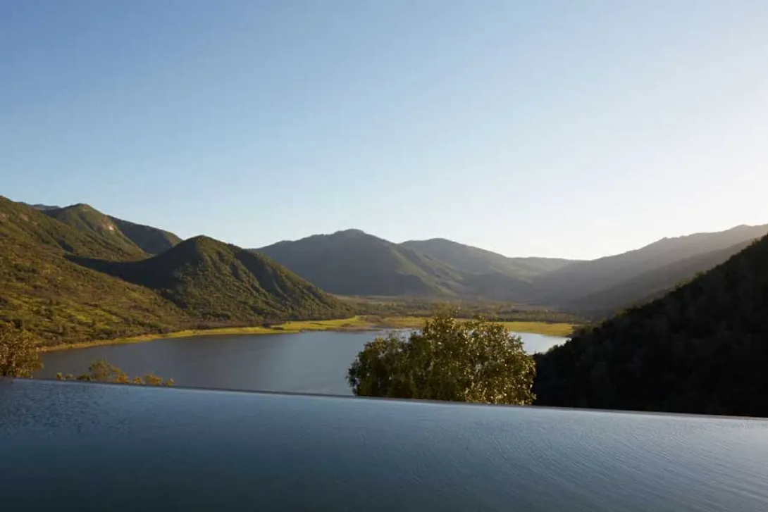 Ao chegar, a visão é fantástica: um edifício central de arquitectura futurista, o verde dos jardins e a piscina de borda infinita que, suspensa sobre a paisagem, parece mais uma sucessão de lagos interligados descendo suavemente pela montanha.