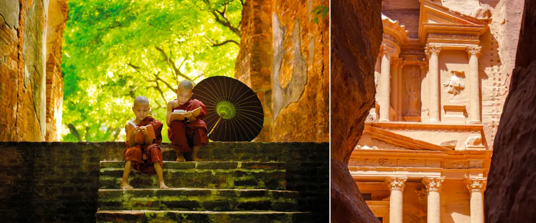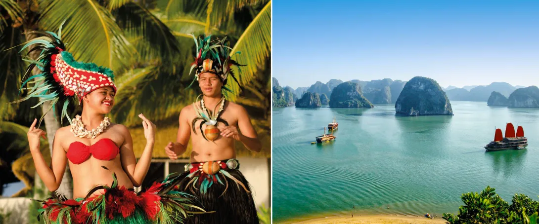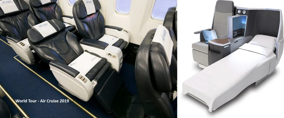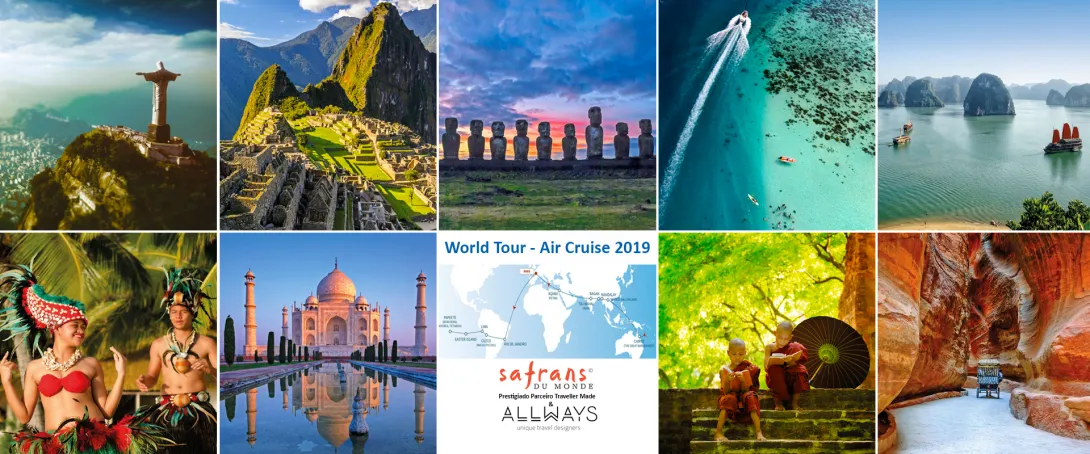 Apenas num Cruzeiro Aéreo deste nível é possível compreender o mundo como um todo. Poderá ver lugares míticos como a magnífica Baía de Guanabara, a cidadela perdida de Machu Picchu, as lendas da Ilha de Páscoa ou descobrir os tesouros da Polinésia Francesa. Vai passar pelo Taiti, Moorea, Bora Bora ou mesmo Tetiaroa, local de um dos resorts mais sumptuosos do mundo. Continuando a ampliar o seu horizonte com o azul brilhante da Grande Barreira de Corais, a esmeralda de Hạ Long Bay, o ouro das stupas de Myanmar, o esplendor imaculado do Taj Majal e por fim o ocre de Petra a culminar neste tour de uma vida.