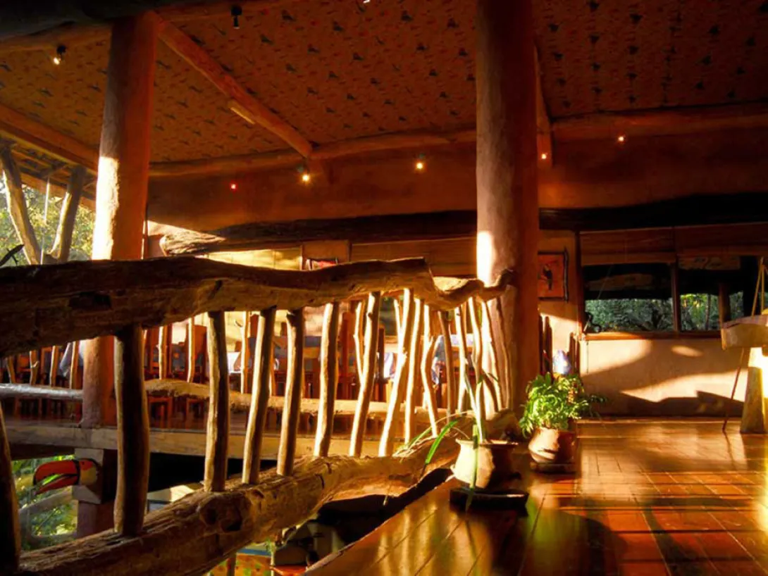 Para além do verde que abraça as construções, o Lodge é um confortável refúgio em intensa harmonia com a natureza circundante. As construções, de linhas brandas, acompanham as suaves oscilações do terreno. Materiais como pedras e troncos caidos naturalmente, foram cuidadosamente incorporados no design final, contribuindo para o conceito conservacionista do lugar.